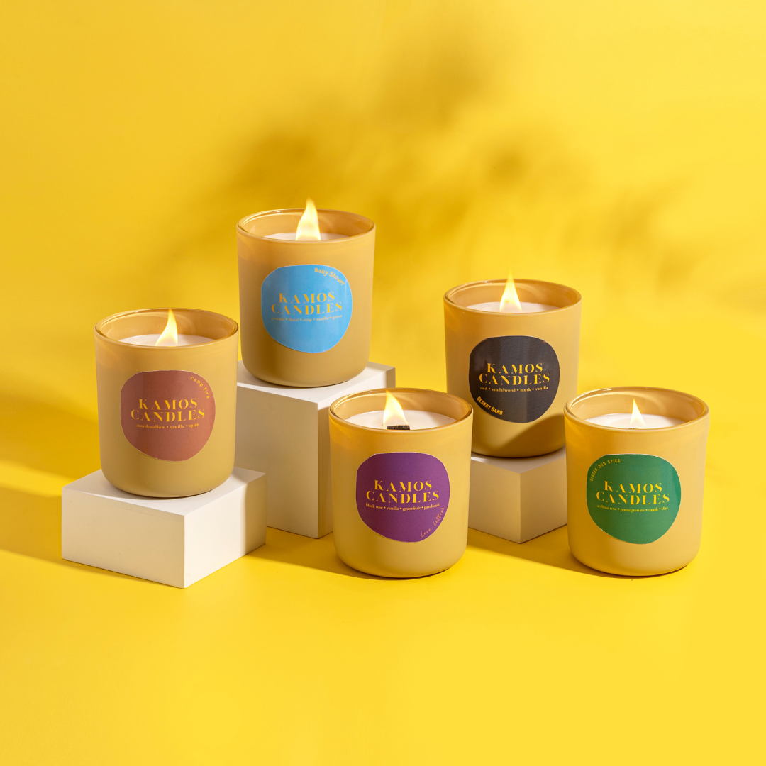 A candle brand developed from concept to final outcome. The project included logo and packaging design, candle making, and art direction of the product photoshoot.